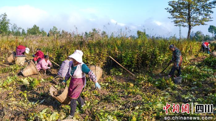 中新網四川新聞11月18日電 (張書浩)近幾天,巴中市平昌縣青云鎮(zhèn)青林社區(qū)晨霧還沒散盡,山梁上中藥材種植基地的玄參田里已經熱鬧開來。20余名社區(qū)居民三五成組,躬身揮鋤,帶著泥土氣息的玄參被連根挖出,輕輕地放進背簍。