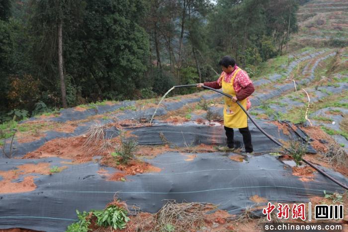 中新網(wǎng)四川新聞12月26日電(吳平華 劉怡)近日,宜賓翠屏區(qū)金坪鎮(zhèn)菜子村的藍(lán)莓種植基地一片繁忙,村民們穿梭在田間地頭,仔細(xì)檢查藍(lán)莓苗的存活情況,及時(shí)開(kāi)展補(bǔ)苗、澆水、除草等管護(hù)工作。雖此刻山頭看似“光禿禿”,但這片初具雛形的藍(lán)莓基地已進(jìn)入秋冬季管護(hù)關(guān)鍵期,待來(lái)年夏季,這里將綠意盎然,迎來(lái)首批藍(lán)莓采摘季。