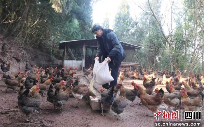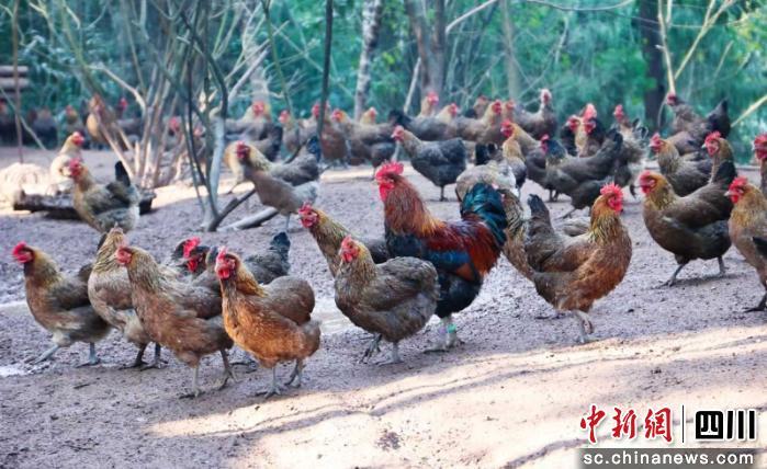 中新網(wǎng)四川新聞1月12日電(吳平華 張鳳莉 )近日上午,陽光透過林間枝葉,雞鳴聲回蕩在資陽市樂至縣高寺鎮(zhèn)石堰村的樹林中。樹下,上千只土雞正在悠閑覓食,為冬日的山林增添了一派生機。樂至縣京川野生動物馴養(yǎng)繁殖有限公司負責(zé)人田根柱正彎腰給雞群喂食:“這批雞已經(jīng)養(yǎng)了五個多月,重量在1.5公斤左右,品質(zhì)不錯!