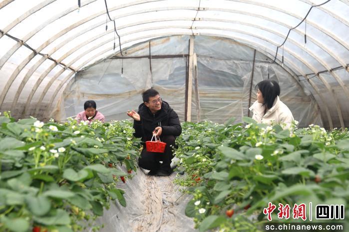中新網(wǎng)四川新聞1月29日電 (羅興 舒俊松)1月28日,走進(jìn)瀘州市龍馬潭區(qū)特興生態(tài)草莓采摘園,掀開大棚薄膜,一股暖意夾雜著清甜的果香撲面而來。棚內(nèi)綠意盎然,翠綠的藤蔓間,一顆顆飽滿紅潤的草莓掩映其中,游客們提著籃子,穿梭在大棚間,俯身挑選成熟的草莓,時不時傳來的歡聲笑語,讓冬日的大棚滿是煙火氣。