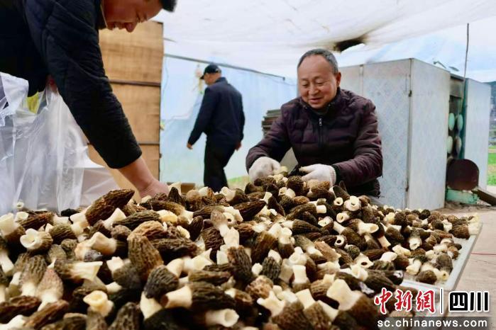 眼下,通江縣羊肚菌已全面進(jìn)入采收旺季,各種植基地一片繁忙,這份“山珍美味”正從田間地頭走向全國各地。在新場鎮(zhèn)清江村股份經(jīng)濟(jì)合作社種植基地,村民們忙著分揀、裝筐,新鮮的羊肚菌即將裝車發(fā)往各地。
