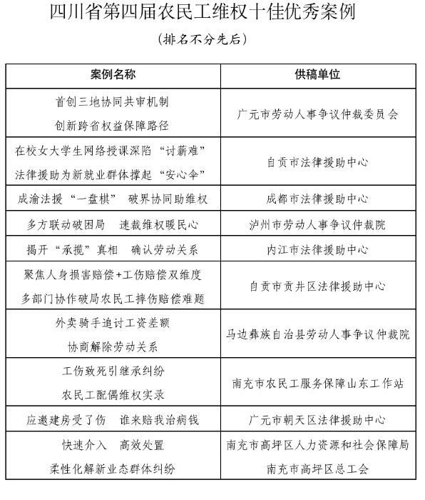 發(fā)布會上通報了四川省第四屆農(nóng)民工維權優(yōu)秀案例評選情況,宣讀了對十佳優(yōu)秀案例和十佳提名案例的通報,為十佳優(yōu)秀案例牽頭組織單位進行了頒獎,十佳優(yōu)秀案例牽頭組織代表作了交流發(fā)言。