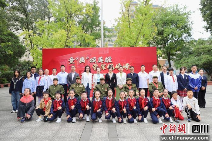 中新網(wǎng)四川新聞10月18日電。ㄓ浾摺⒅铱。10月18日,四川省退役軍人事務(wù)廳聯(lián)合省委宣傳部、省委黨史研究室、團(tuán)省委、省文聯(lián)、省少工委等部門,在四川省革命傷殘軍人休養(yǎng)院舉行“童‘畫’頌英雄 榮軍憶崢嶸”——“童‘畫’我心中的英雄”全民國防教育主題活動。四川省革命傷殘軍人休養(yǎng)院老英雄、老戰(zhàn)士代表,主辦單位代表,“童‘畫’我心中的英雄”繪畫作品獲獎代表,以及成都新都區(qū)繁江小學(xué)學(xué)生代表等參加活動。