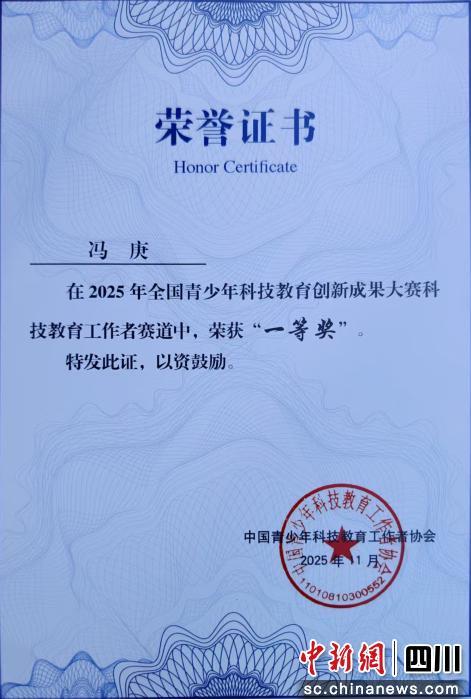 近年來,平昌縣將科技創(chuàng)新教育作為特色發(fā)展突破口,建成創(chuàng)客空間、開設(shè)特色課程,鼓勵(lì)師生從生活中發(fā)現(xiàn)問題、用科學(xué)方法尋找答案。馮庚的這枚全國一等獎(jiǎng),正是這片科教沃土結(jié)出的又一碩果。