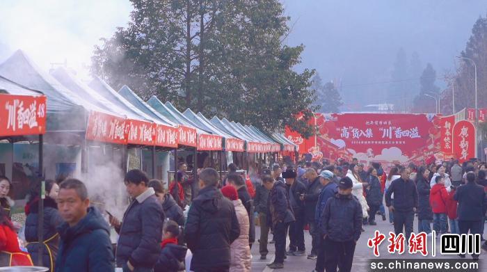 中新網(wǎng)四川新聞1月18日電。ㄇ裼钕 常肖)1月17日,在綿陽市安州區(qū)最偏遠(yuǎn)的山區(qū)鄉(xiāng)鎮(zhèn)高川鄉(xiāng),因一場鄉(xiāng)土氣息濃厚的年貨節(jié)暨迎新春特色文化活動而格外熱鬧。