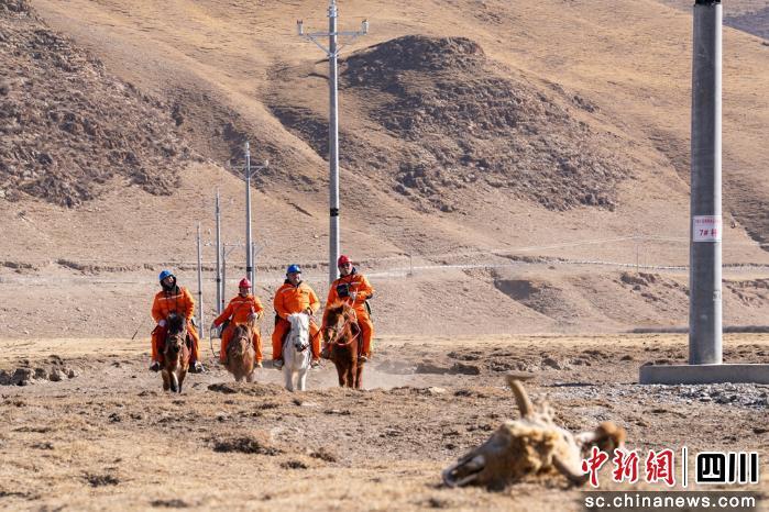 石渠縣地處高原,自然環(huán)境惡劣,面積超2.5萬平方公里,冬季長達8個月,極端低溫達零下45℃。也正因為輸電線路多穿越無人區(qū),車輛無法通行,且常有狼、藏馬熊等野生動物出沒,當(dāng)?shù)毓╇姴块T專門成立了一支馬背巡線隊,不定期開展巡線工作,守護高原電網(wǎng)安全。