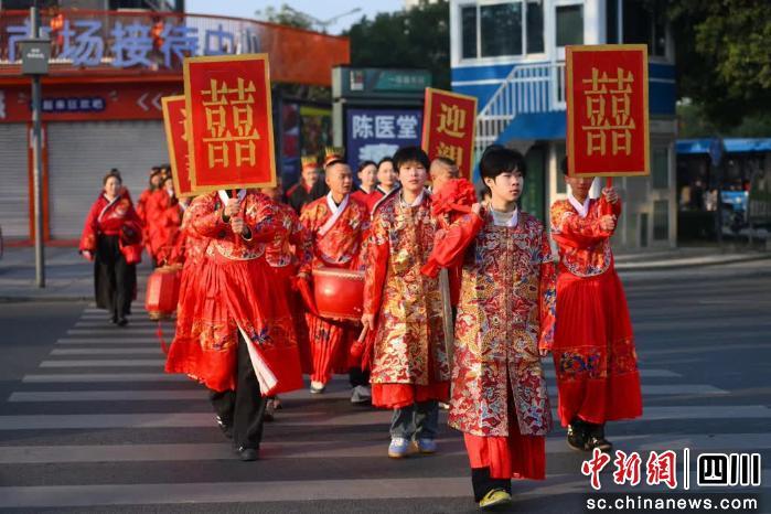 中新網(wǎng)四川新聞2月13日電 (李靜潔 李洋 肖鵬)2月12日,綿陽(yáng)市游仙區(qū)開展“富樂游囍”婚戀禮遇行動(dòng)啟動(dòng)儀式暨芙蓉漢城漢式集體婚禮活動(dòng)。10對(duì)新人身著典雅漢服,在古禮浸潤(rùn)與眾人的祝福中,許下相守一生的真摯諾言,攜手開啟婚姻生活的美好篇章。