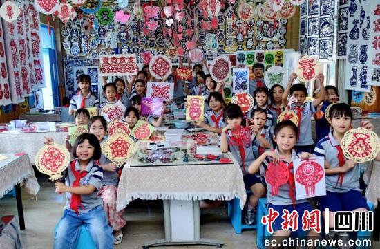 同一天,成都市雙流區(qū)永安小學(xué)的剪紙課上,學(xué)生們巧手翻飛,刀鋒游走間一張張紅紙搖身成為一幅幅民俗藝術(shù)品。峨眉山市第三小學(xué)的學(xué)生們正在練習(xí)峨眉武術(shù),一招一式干凈利落,“嘿哈”之聲鏗鏘有力。而雷波縣金沙鎮(zhèn)中心校的月琴老師,指導(dǎo)學(xué)生們撥動(dòng)琴弦,古老的彝族樂(lè)器奏出悠揚(yáng)的民族韻律。