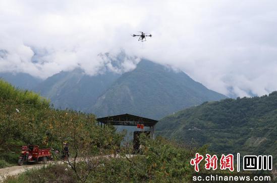 中新網(wǎng)四川新聞9月22日電 (趙瓊)金秋九月,汶川縣2萬多畝紅脆李正迎來集中采收期,田間地頭處處洋溢著豐收的喜悅。在海拔1600米的綿虒鎮(zhèn)涂禹山村果園里,一架滿載鮮果的農(nóng)業(yè)無人機騰空而起,沿著預設航線穿越云霧,將剛采摘的紅脆李精準送至山腳選果棚。這場由四川青霄動能科技有限公司阿壩州汶川縣無人機調(diào)運公司主導的“空中運輸革命”,正以科技之力破解高山運輸難題,讓羌山鮮果以更鮮活、更高效的方式走向全國市場。
