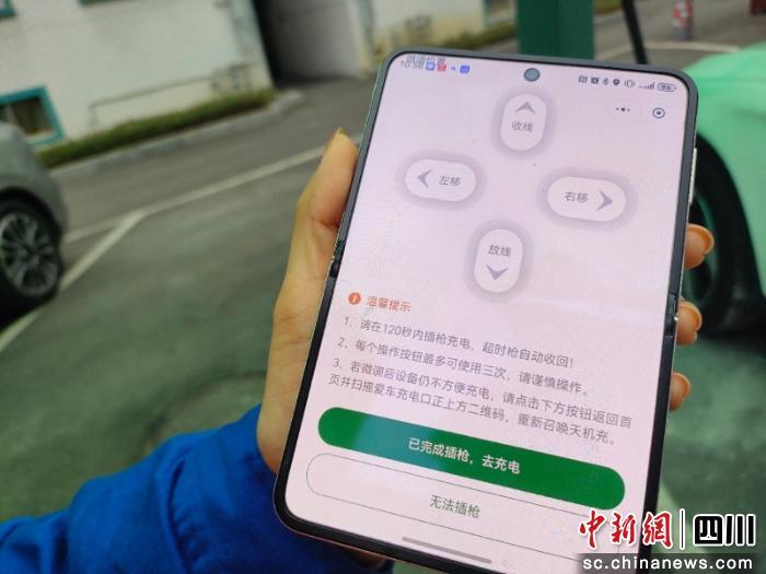 中新網(wǎng)四川新聞12月26日電(吳平華 黃成薇)把車停好、掃碼下單,移動(dòng)共享充電機(jī)器人便沿著軌道“跑”到車輛停放處,充電槍自動(dòng)下放、精準(zhǔn)對(duì)接,插上就能啟動(dòng)充電。在青羊區(qū)青華路27號(hào)院,國(guó)網(wǎng)成都青羊供電中心草堂供電營(yíng)業(yè)所副所長(zhǎng)魏瑤一邊用手機(jī)演示操作,一邊細(xì)致介紹著該院落剛“上崗”的移動(dòng)共享充電機(jī)器人的操作。