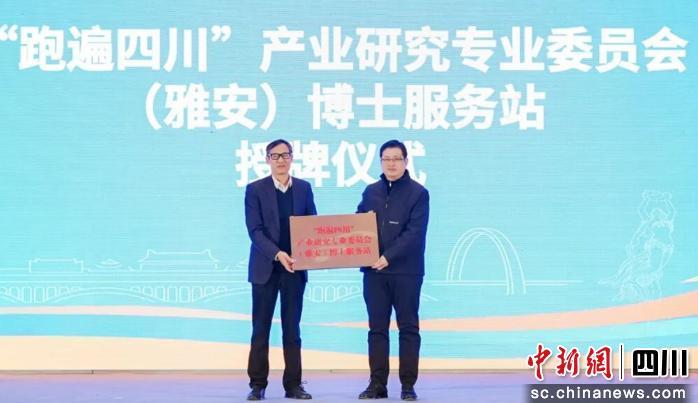 同時(shí),活動(dòng)中,西南財(cái)經(jīng)大學(xué)黨委常委、副校長桂富強(qiáng),為“跑遍四川”產(chǎn)業(yè)研究專業(yè)委員會(huì)(雅安)博士服務(wù)站授牌。雨城區(qū)委書記陳建偉接牌。