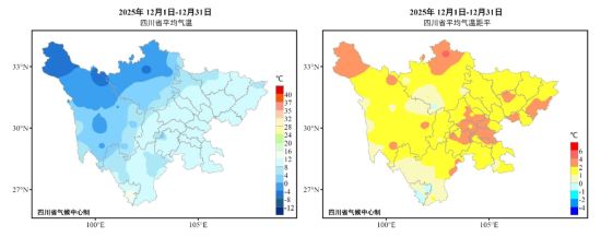氣象監(jiān)測顯示,2025年12月,四川全省平均氣溫7.7℃,較常年同期偏高1.6℃,位列歷史同期第1高位。其中,盆地大部與常年同期相比偏高1.0~2.2℃。