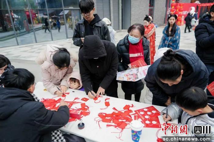 “灶福煙火”匯聚傳統(tǒng)美食與優(yōu)質(zhì)農(nóng)產(chǎn)品,糖畫、吹糖人、冰糖葫蘆、三大炮等非遺美食香氣四溢,特別設(shè)立的“糖畫DIY體驗(yàn)區(qū)”邀請(qǐng)非遺人現(xiàn)場(chǎng)教學(xué),游客可親手制作生肖馬或“!弊痔钱,實(shí)現(xiàn)“可打卡、可消費(fèi)、可體驗(yàn)”的深度融合;崇州米酒、火鍋底料、蜂蜜制品等特色農(nóng)副產(chǎn)品集中亮相,助力縣域優(yōu)質(zhì)農(nóng)產(chǎn)品走進(jìn)城市消費(fèi)市場(chǎng)。“拾光奇遇”則聚焦老字號(hào)、護(hù)膚品、國(guó)潮文創(chuàng),以及“祠市迎春”主題對(duì)聯(lián)、紅包等新春產(chǎn)品,讓市民在懷舊氛圍中選購(gòu)特色年貨!翱椩钙硇隆本劢狗沁z手作,面人、剪紙、中國(guó)結(jié)等手工藝人現(xiàn)場(chǎng)展演教學(xué),剪紙肖像攤前排起長(zhǎng)隊(duì),藝人快速剪出融入新春元素的游客側(cè)影,成為獨(dú)特的新春紀(jì)念。