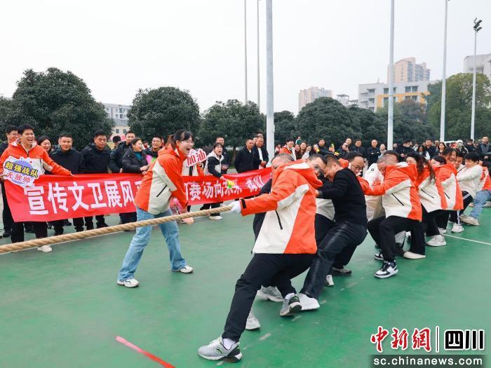 開幕式結(jié)束后,31支隊(duì)伍分別進(jìn)行拔河項(xiàng)目比賽。拔河繩中間系的著紅色標(biāo)記帶在陽光下格外醒目,雙方隊(duì)員緊握繩子,雙腳蹬地,身體后傾,還未開始便鉚足了勁。隨著裁判一聲哨響,現(xiàn)場吶喊聲震耳欲聾,助威聲浪一波高過一波,歡呼聲、笑聲、喘息聲交織在一起,回蕩在整個(gè)運(yùn)動(dòng)場上。