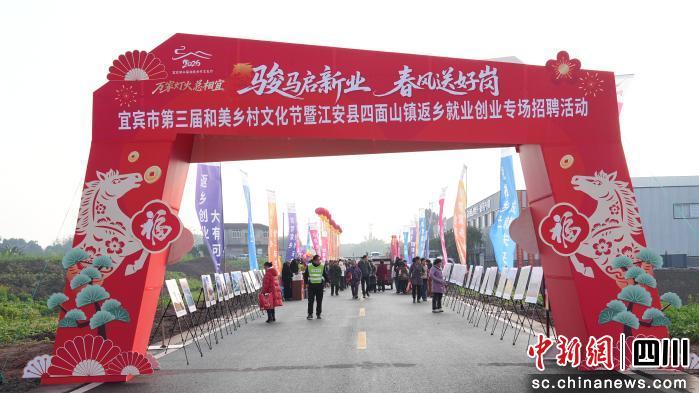 中新網四川新聞1月31日電。ㄠu程誠 許捷)31日,宜賓市第三屆和美鄉(xiāng)村文化節(jié)暨“駿馬啟新業(yè)春風送好崗”返鄉(xiāng)就業(yè)創(chuàng)業(yè)專場招聘活動在宜賓江安縣四面山鎮(zhèn)小微產業(yè)園區(qū)正式啟動。