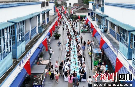 中新網(wǎng)四川新聞10月5日電 (姜強)國慶假期,各地民俗活動精彩紛呈。近日,在旌陽區(qū)孝泉鎮(zhèn)半邊街,120余米的長桌宴熱鬧開席,60張長桌沿街鋪開,串聯(lián)起地道美食與民族風情,游客在煙火氣中品味舌尖美食,感受民族團結(jié)溫情,為國慶增添濃郁的喜慶氛圍。