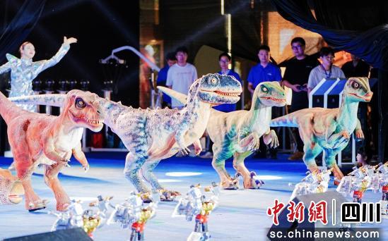 當(dāng)晚,雙足和平永川龍、雙足多齒何信祿龍、四足華陽龍、四足甲龍等8款具備行走、互動功能的智能仿真恐龍機(jī)器人首次集中展演亮相,標(biāo)志著自貢仿真恐龍產(chǎn)業(yè)從傳統(tǒng)制造正式邁入智能化、科技化的新階段。