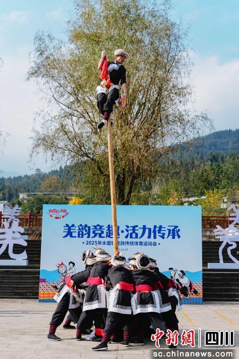 中新網(wǎng)四川新聞11月19日電 19日,羌?xì)v新年之際,汶川縣水磨鎮(zhèn)沉浸在一片歡樂的海洋。鼓聲震天,羌歌悠揚(yáng),一場以“羌韻競?cè)ぁせ盍鞒小睘橹黝}的羌族傳統(tǒng)體育運(yùn)動(dòng)會在此隆重開幕,為這一古老節(jié)日注入了蓬勃的活力,同時(shí)也揭開了水磨鎮(zhèn)一系列精彩文旅活動(dòng)的序幕。