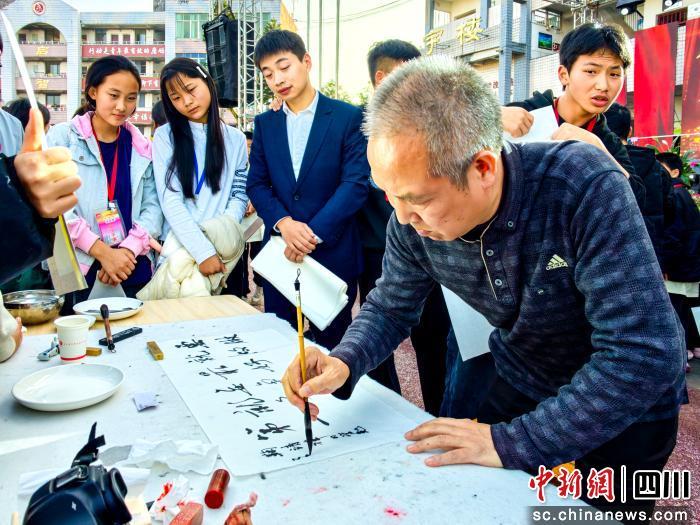 日前,四川省瀘州市合江縣的書畫藝術家走進鳳鳴中學揮毫潑墨,為學生們傳播書法繪畫藝術。