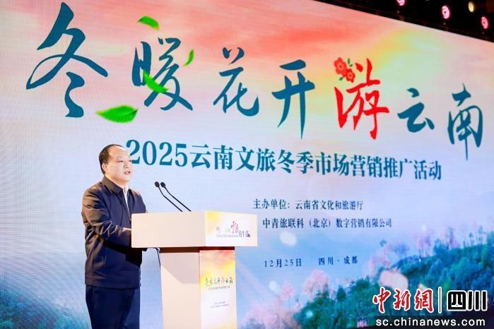 中新網(wǎng)四川新聞12月25日電。ㄌ瀑唬12月25日,“冬暖花開游云南”2025云南文旅冬季市場(chǎng)營銷推廣活動(dòng)在四川成都舉行。本次活動(dòng)由云南省文化和旅游廳主辦,中青旅聯(lián)科(北京)數(shù)字營銷有限公司承辦,通過“主題推介+商圈路演”雙線聯(lián)動(dòng),以“暖陽和鮮花”向廣大游客朋友們發(fā)出冬游云南的熱情邀約。