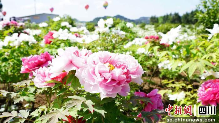 中新網(wǎng)四川新聞3月27日電。喂鹑A)“唯有牡丹真國色,花開時節(jié)動京城!毖巯,西充縣仙林鎮(zhèn)來有生態(tài)農(nóng)業(yè)公園內(nèi),500萬株牡丹競相綻放,一簇簇一層層,千姿百態(tài)、美不勝收,吸引八方游客紛至沓來,共赴春日賞花盛宴。