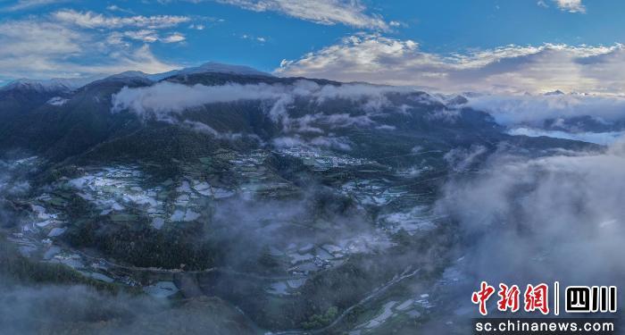 據(jù)悉,在云霧繚繞間,田疇錯落、村寨隱現(xiàn),遠處的雪山也在云端若隱若現(xiàn)。自然的靈秀與人間的煙火在此溫柔交融,繪就了磽磧藏鄉(xiāng)最治愈、最動人的春日圖景。(高華康 攝)